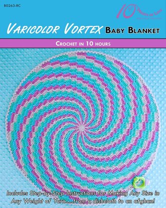 Swathe your tot in a sea of swirls with this stash-busting circular blanket! Worked in simple double crochet with one color at-a-time, the ingenious design sports a cyclone of stripes rhythmically radiating from the center. Whether your colors are bold and bright or muted and monochrome, this mesmerizing pattern will cleverly turn them into one-of-a-kind fabric. And with our step-by-step instructions for making any size in any weight of yarn, you can make a variety of hue-filled homegoods…..from dishcloths to afghans!