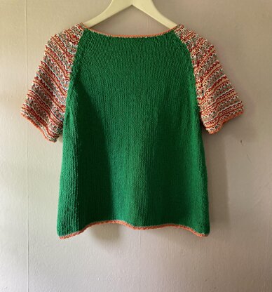 A relaxed and easy knit for the summer, with a textured striped sleeve detail. Made using an aran weight cotton yarn making it a quick and easy make.