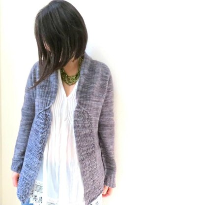 A seamless cardigan with cables and lace, worked from top down with raglan style sleeves.