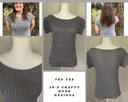 The Vee Tee uses the V-Stitch (dc, ch 1, dc) all in one stitch.