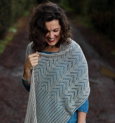Some days, only fine lace will do. On those days, when your soul feels tender and you’re quieter than usual, Veela is the shawl you’ll reach for. She’ll do all the talking; actually, Veela will sing. Her graceful columns of soft chevrons, and frothy lace ends, will lift your chin a little higher, make your eyes shine brighter, and quite likely even cause a broad smile to burst from your lips. Veela lets you know you’re not just doing OK, you’re brilliant. Knitted from side to side in fine lace-weight yarn, Veela is a soft, elegant, stole that’ll almost knit herself. She’s irresistible to knit, and as the twists and turns in her lace are unveiled, you’ll be tempted to just knit another row, and another ... and another. Including a simple chart as well as written instructions, Veela is perfect for knitters who love to feel fabulous