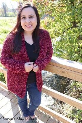 This Velvet Cardigan is made with simple stitches and fairly quick to make using bulky yarn.