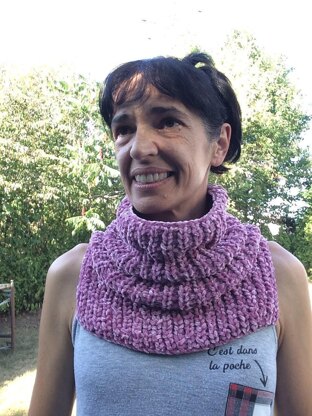 The false fisherman’s rib highlights the softness and swelling of the velvet yarn in this simple and fast knitting collar !