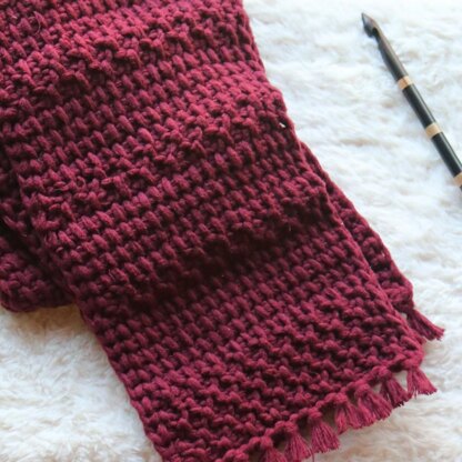 This pattern is for a textured chunky beginner-friendly crochet + Tunisian crochet scarf. It’s the perfect addition to your Fall accessories and will help you practice the basic crochet and Tunisian crochet stitches! The best part is that it works up super fast so it’s great for gift making! The sample is made in the adult size and the length is on the short side but length can be customized easily by completing more or less rows.