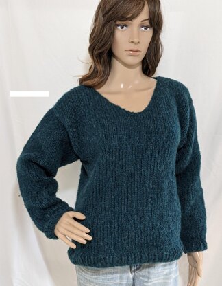 This classic, simple sweater is knit in the round with only shoulder seams. Features basic stockinette stitch and 1x1 ribbing. Great sweater for beginners, it is designed for bulky weight yarn and makes up quick!