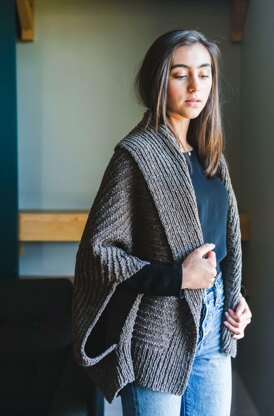 With a cozy, oversized shawl collar and textured ridge stitch body, Veronika will shine knit up in your favourite worsted weight wool. Whether paired with a tank, top or dress, Veronika is effortless and stylish. It's sure to be a cardigan you'll reach for over and over again. Knit in one piece, the unique construction of this roomy cardi makes it a quick and fun knit!