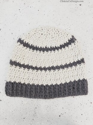 The Verso Beanie crochet pattern features texture and stripes. This top down beanie pattern is available in sizes from baby to adult.