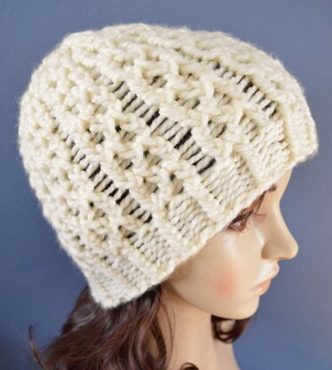 A fun, fashionable and fast hat pattern which includes detailed written instructions, photos of stitches, and links to videos. This beanie is created on a 36 peg round loom with 3/4" gauge (knifty knitter, boye, darice, loops & thread).