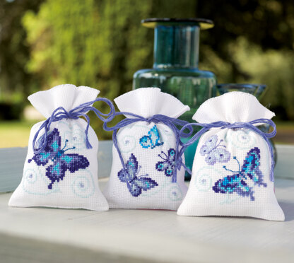 Vervaco Blue Butterflies Potpourri Bags - Pack of 3 Cross Stitch Kit - 8cm x 12cm