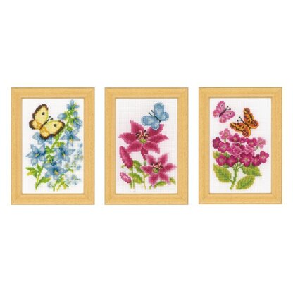Vervaco Flowers & Butterflies Mini Cross Stitch Kit (3pcs) - 8cm x 12