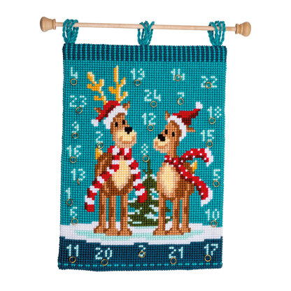 Vervaco Wall Hanging Advent Calendar Christmas Elk with Scarves Cross Stitch Kit - 40cm x 53cm
