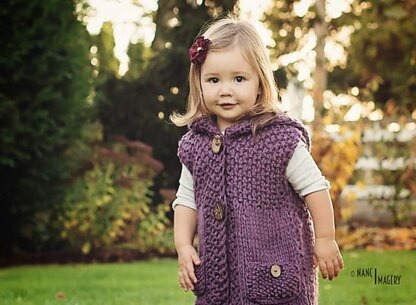 Knit a charming and practical vest for your little one with this chunky-style hooded vest knitting pattern, written for child sizes 2–4Y, 4–6Y, 6–8Y, and 8–10Y. This beginner/intermediate-friendly pattern is worked flat and features cozy stockinette panels trimmed in classic moss stitch for texture and structure.