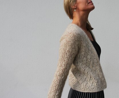 VesterbyCrea No.20 er cardigan med et lodret hulmønster. Den er strikket med to tråde. Modellen strikkes oppefra og ned. I begyndelsen strikkes ryggen og derefter hvert forstykke. Forstykkerne og kroppen strikkes sammen med det lodrette hulmønster. Krop afsluttes med en aflukning af vandrette ret masker. Ærmekanter samles op i de eksisterende masker. Der strikkes en enkel omgang med vandrette ret masker og derefter strikkes rundt med det lodrette hulmønster før de afsluttes med aflukning med vandrette ret masker. Til slut samles masker op langs forstykkerne og nakken hvor der strikkes én pind med vandrette ret masker med aflukning. Cardigan’en er monteringsfri. STØR