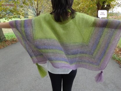 Un poncho particolare, con un avvio davvero insolito, un po’ elaborato, ma che vi ripagherà della fatica: un bordo scollo elastico ma che non “cede”, una vera novità. Una volta superata la difficoltà dello scollo, il resto del poncho è facile. Istruzio
