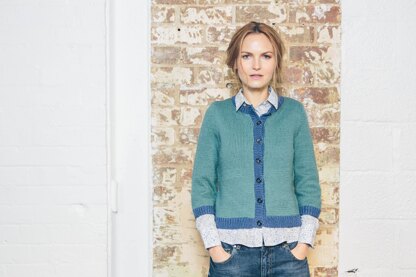 This pattern included instructions for a round or V neck cardigan with the option of contrast trims. it also gives options for long or three quarter sleeves.