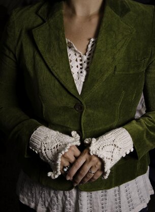 Soft, delicate and vintage inspired. These Victorian style cuffs will add a little romance to any ensemble. A beautiful stitch pattern creates intricate petals that intertwine. The cuffs are belled but still remain close to your hands for warmth and a pretty picot edging adds flounce.