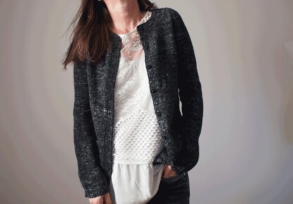 The vienna cardi is worked in rows seamlessly from top down with a cute little lace pattern on back and pockets. Neckband and front bands are worked in k1,p1 ribbing, neck shaping will be done with short rows, using the german short rows method. For the shoulders, increases will be made in every row along one seam stitch (contiguous method by Susie Myers). Sleeve increases will be done in every second row. The pockets backs are worked into the fronts.