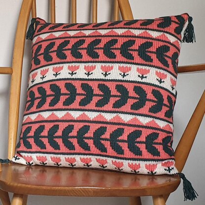 Designed in collaboration with Amy Blackwell as part of the Amy by Jem cushion collection - the Vine Cushion features fair-isle vines, triangles and rows of flowers.