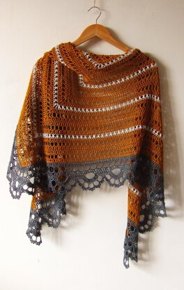 Shawl has straight triangular shape and is worked top-down as one piece. Pattern both written and charted.