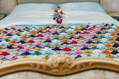 This blanket was inspired by a 1970’s vintage crochet blanket; the tiny three dimensional motifs are ideal “stashbusters” and result in a vibrant, colourful blanket that can be made in any size.