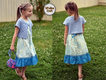 This beautiful short sleeve bolero is an ideal garment for hot summer days. It looks great with any summer outfits such as beach dress, pretty skirt or even with shorts. The bolero is quick and fancy to knit. It is knitted back and forth on circular needles completely seamless. The Lilac Coast Bolero is knitted with pretty lace pattern with sport weight cotton yarn in light lilac color. It is decorated with the pearl beads and the matching button at the front. The pattern is easy to follow and suitable for advanced beginners. It contains four pages of written instructions, lace chart and picture.
