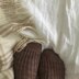 In 2017, Fiona Alice published her first design, Virva, a matching hat and fingerless mitt set in Issue 3 of Laine Magazine. Still inspired by these stitches, Fiona felt a pair of socks in the same fashion would be an enchanting addition to the set. The Virva Socks are adorned with the same textures and motifs and again, use Viola’s rustic hand dyed colours. The twisted ribbing turns into flower steams and buds which appear to be encased in a dome like structure, as if being protected by a greenhouse or terrarium. Individual patterns for Fiona’s Virva Hat and Virva Mitts can also be found online.