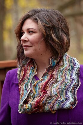 Join in the advent calendar fun with this Missoni-inspired cowl, named for Vittorio Missoni who turned the fashion brand into a global powerhouse. Designed for the Shall We Knit? yarn store advent calendar, this fun cowl comes in two sizes and uses up all the yarn in 24 colours of Koigu 'Minis.'
