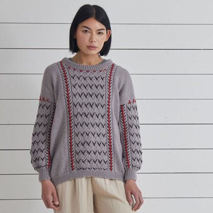 Vlada is a gorgeous introduction to cabling, if you haven't done much of this textural technique before. This is a knitted flat and seamed sweater, where you can knit the pieces, and then work the embroidery over the cables as you go, or all together at the end. It really makes the cables pop, and you can introduce any shade that you love to enhance the texture!