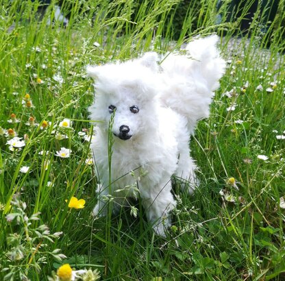 This is Waffle, an American Eskie.This dapper dog is one of the most brainy breeds and you can teach it to do tons of stuff! So get your woof on, knit this pawsome pal and maybe teach it a trick or two!