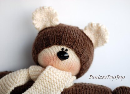 The patterns includes instruction with pictures how to make Waldorf knitted Bear doll and his scar and hat with holes for ears + unlimited email help from me in case you get stumped.