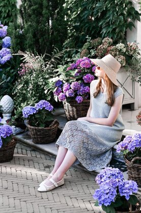 “Wallflower in bloom” dress is worked seamlessly from the neck down. The back yoke is worked first. Then, stitches are picked up along the shoulder line to begin the two halves of the Front, which are then joined after neckline shaping has been completed. Back and Front are joined after completion of armhole shaping, after which the body is worked in one piece in the round to the desired overall length. Lastly, neckline and armhole finishing are worked.