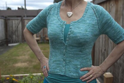 The Wanda Nell is a lightweight cardigan that was designed specifically for knitting with sock yarn, preferably hand dyed and hand painted sock yarn. Knitting the WN with sock yarn on a bit larger needles produces a lovely fabric that'll keep you warm during the spring and summer (think air conditioning!) but won't be too heavy.