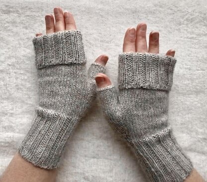 These folded cuff fingerless mitts are a quick and fun knit that will become your go-to winter accessory or make a wonderful gift. The folded top cuffs add extra warmth due to the double layer of rib, or you can unfold them to cover your fingers up completely. A great option for both keeping warm AND keeping fingers free for using a phone, typing, knitting, etc.