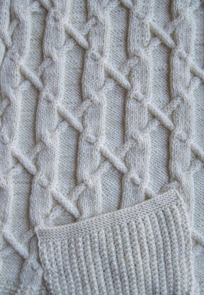 If you love knitting cables, you’ll enjoy this shawl made using worsted weight yarn, guaranteeing that you’ll be warm. The shawl incorporates a little known textured stitch with an ornate cable that shows itself beautifully in this shawl. The pockets insure that the shawl will stay put on your shoulders.