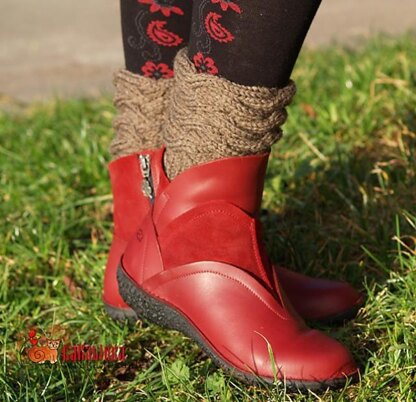 The warm boot cuffs are easy, and work fast up and use two skeins of aran or worsted weight yarn (about 155-160 yards). To fit an adult: 11" (28 cm) wide and 6.2" (16 cm) long.