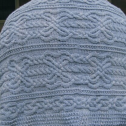 There are two very unique cables in this shawl that combine beautifully into a single shawl. The cables combine with a highly textured stitch as well as a simple knit-purl stitch. All stitches are both charted and written out.