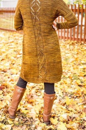 A long cardigan with lace panel on the back. Drop shoulders which are shaped with short rows, a seamless top-down work, subtle dolman sleeves, little oversized including subtle waist shaping. Easily adjustable for shorter version if preferred.