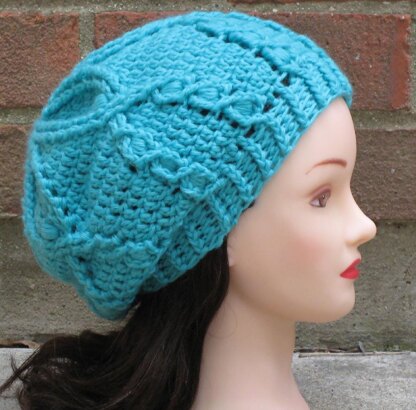 This pattern is for an intricate slouch hat featuring a cabled flower crown, twisting puff stitch cables, and a snug ribbed brim. This hat has generous slouch and will add a stunning touch to any wardrobe! This pattern comes with detailed instructions and helpful, clear photos.