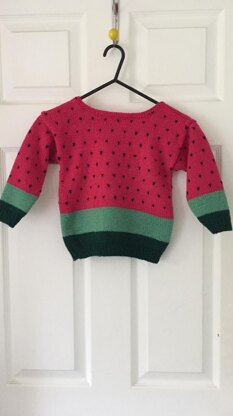 The jumper is worked bottom up. It features a simple colour work pattern. There is approximately 7/8cm positive ease. Children come in all shape and sizes so pick a chest size based on a garment that fits well. The length and sleeve length can always be made longer. This may affect the quantity of wool required.