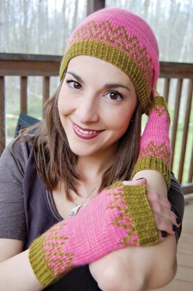 My Wavelength pattern that was designed exclusively for A chevron like wave embellishes the top and bottom of these fun fingerless mitts as well as the brim of this comfy hat. Inspired by The Plucky Knitter’s beautiful yarn and colors, these mitts are as much fun to knit as they are to wear!