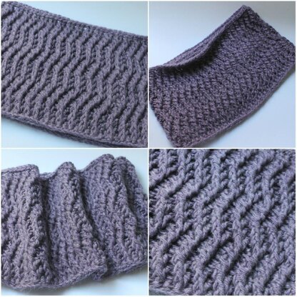 A delightfully thick and unusual wave pattern is used to create this luxurious warm cowl. Size is fully adjustable from fitted to slouchy - you could even make it longer for an infinity scarf.