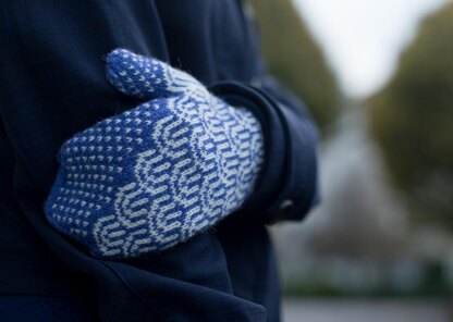 A graphic wave pattern set beneath a starry sky adorn these lightweight colourwork mittens. This motif is one that I love, it is painted on my bedroom wall, the first thing I see when I wake up.