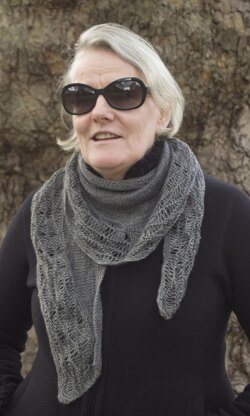 This crescent shawlette is work from the outer lace section inwards with shaping in the stocking stitch section to create the curve. The lace is created with elongated stitchesand garter stitch.
