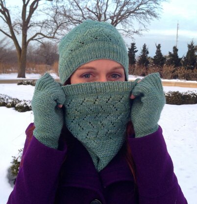 This cowl pairs nicely with the Twisted Sand Mitts and the Triple Swell Hat as you may have noticed in the last picture. Keep your eyes on the horizon for more patterns in this collection.