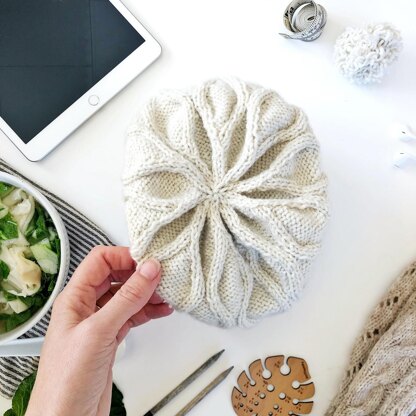The cables thoughtfully meet together at the crown to form a beautiful star pattern.
