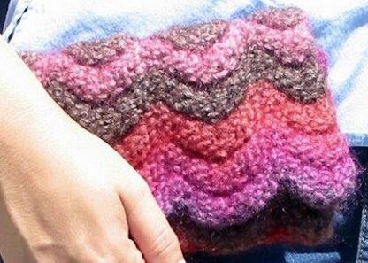 This lovely felted clutch uses a rippled welting pattern to give it unusual depth and firmness. It is a perfect clutch size at 7 inches by 4.5 inches (18cm X 11cm), and includes an optional I-cord wrist strap. The stitch pattern has just enough interest that you'll enjoy making this gem over and over again.