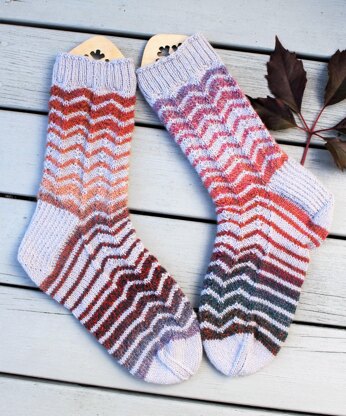 These socks are worked from the cuff down with a heel flap and gusset decrease.