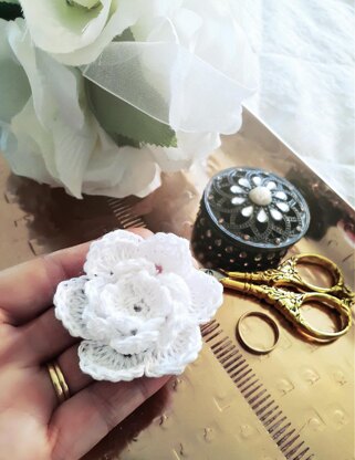 Materials: You may use yarn and hook of choice with this flower. Sample used... • Milford Soft 3ply cotton – small amount • Metal crochet hook size 2.1 mm or similar • Yarn needle for sewing • Optional: Button, needle & thread for sewing