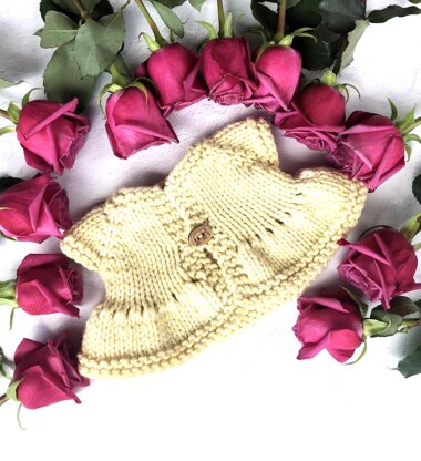 Wee Cutiepie is a super-fast to knit baby sweater, and only takes an hour or so to make from start to finish. This is knit top down, and you will only have 2 ends to weave in. The adorable handmade button can be found in the Etsy shop: Katrinkles