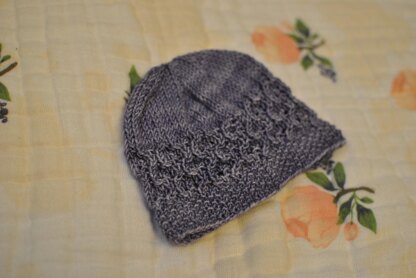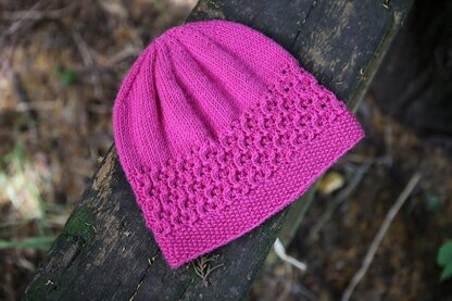 Wee Heather May Hat has a sweet lace pattern that wraps around the brim, and this looks good on the whole family. You have the choice for a classic beanie or a slouchy hat. The pattern is written out and charted.